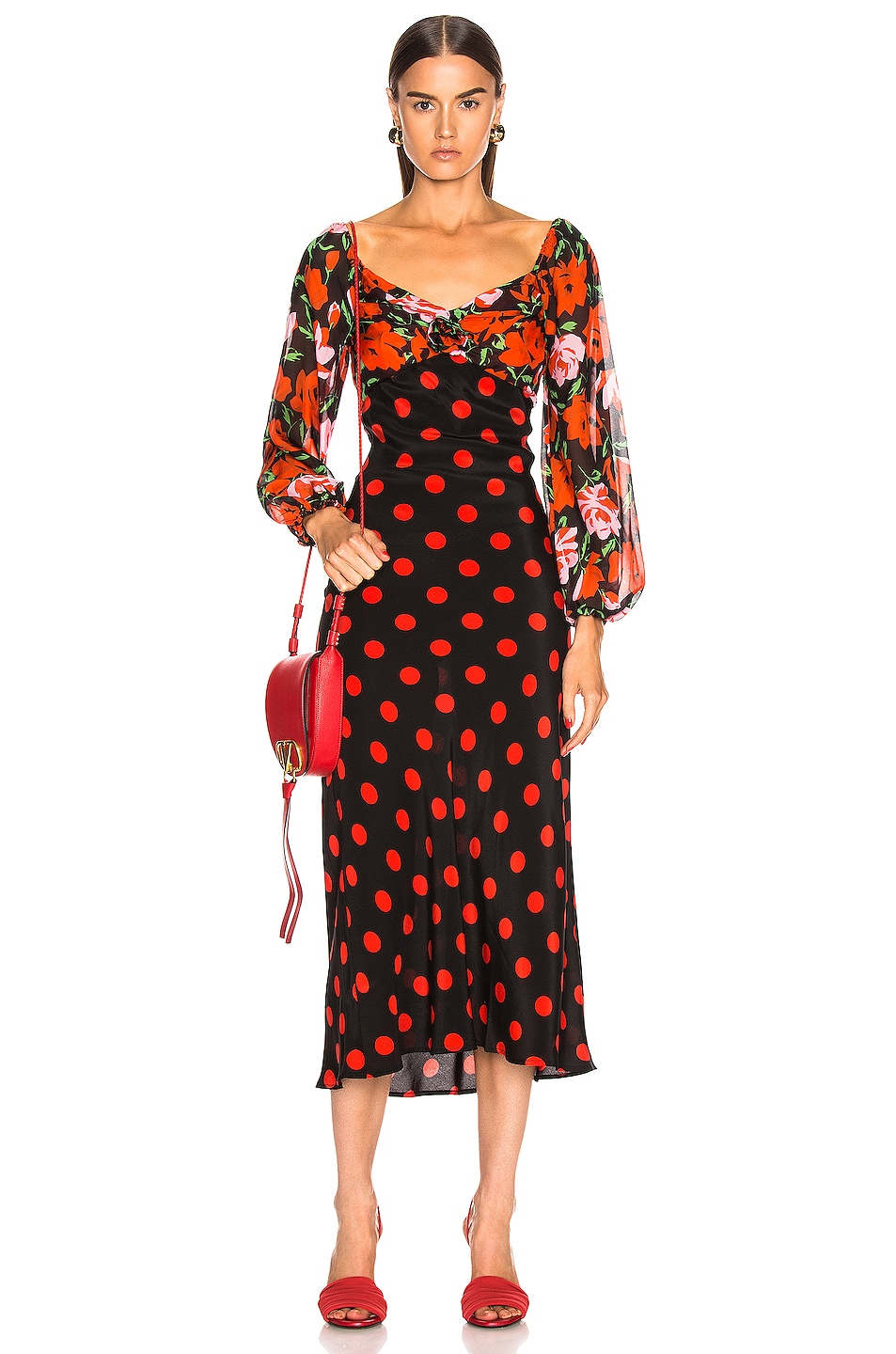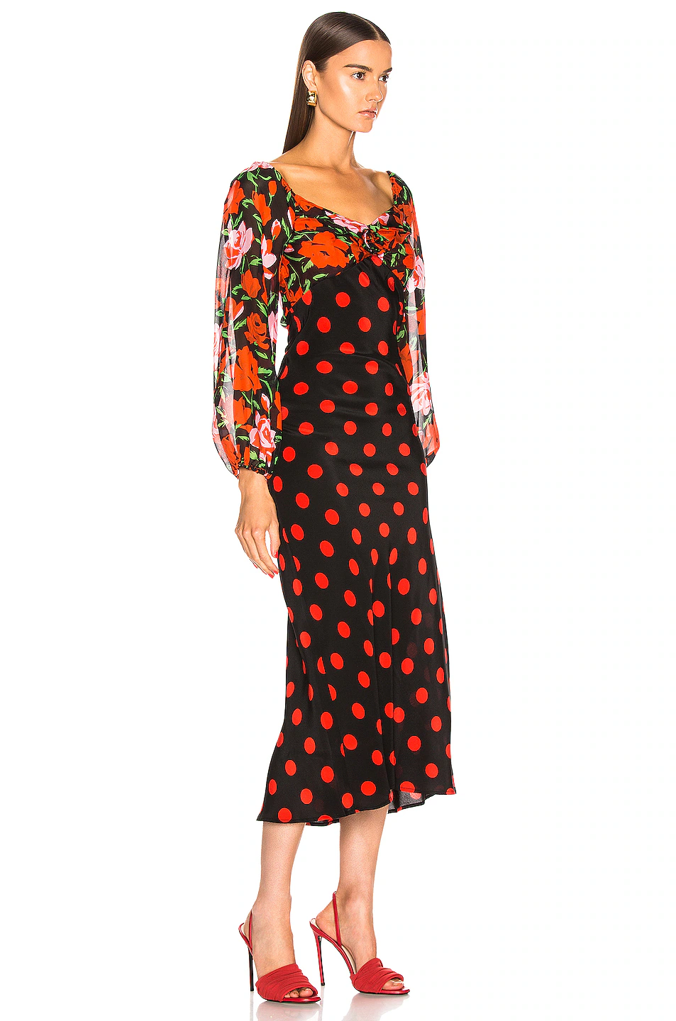 Sweetheart neckline and long sleeves. As seen on Selena Gomez