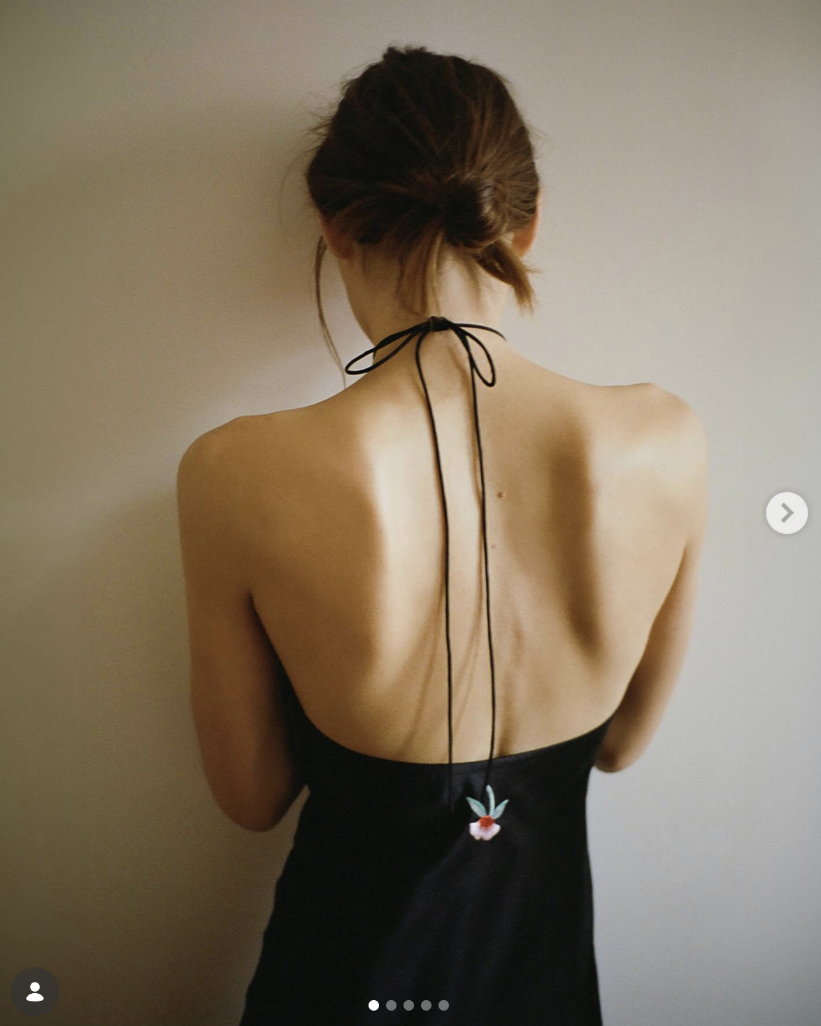 The halter dress that's going to have you moving and shaking. A diamond pointed neckline and low back with a thin rouleau strap to tie at the nape of your neck. She's sexy and double layered - printed on the top and plain underneath giving you total coverage. Midi in length and cut on the bias to slip on and hug your curves just where you want it. As seen on Lila Moss.